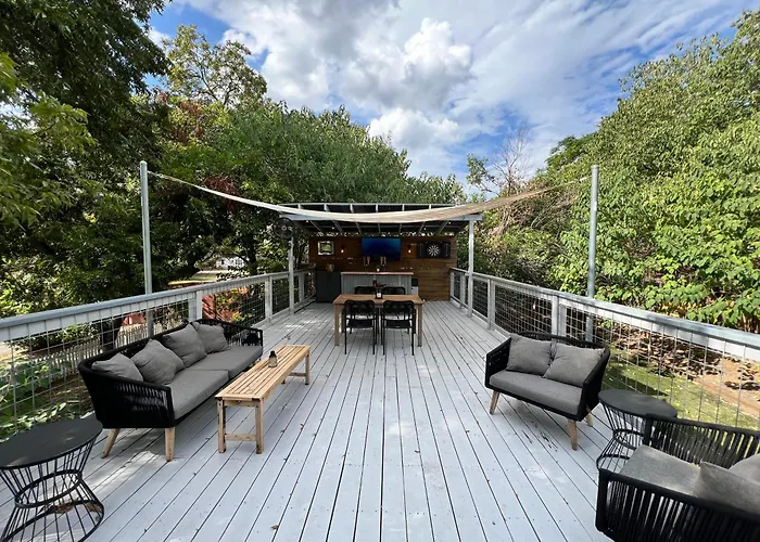 A acomodação de Austin oferece cozinha totalmente equipada, bem como zona de refeições e uma área de refeições ao ar livre para cozinhar e jantar. Também pode utilizar chaleira elétrica, máquina de café/chá e refrigerador para preparar a sua própria refeição. A pousada Authentic Austin Pad With Roof-Top Deck Bar fica a alguns minutos de Austin Daily Press, onde os hóspedes podem desfrutar de várias refeições. O aeroporto Internacional de Austin pode ser alcançado em 15 minutos de carro.